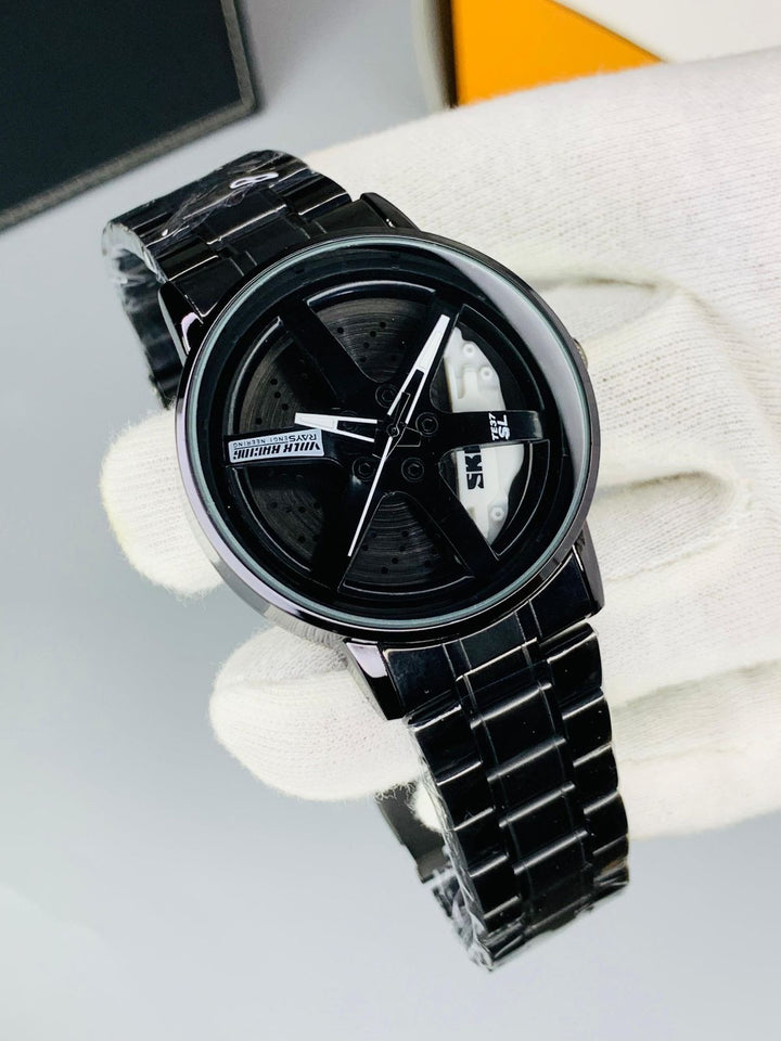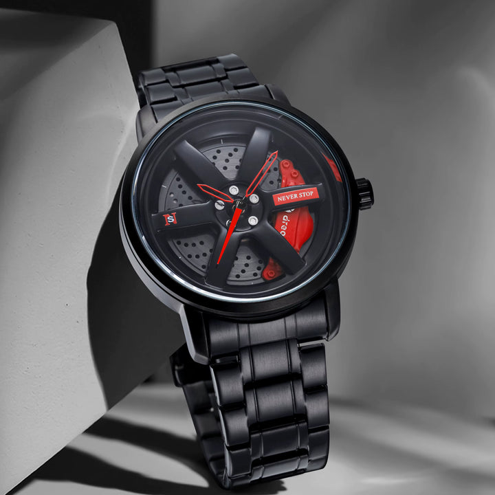 • - This stunning stainless steel watch features a unique car rim hub design. The innovative design is sure to draw attention, and all your friends will be asking where you got it from. It is powered by a Japanese quartz movement that ensures timekeeping accuracy and reliability.